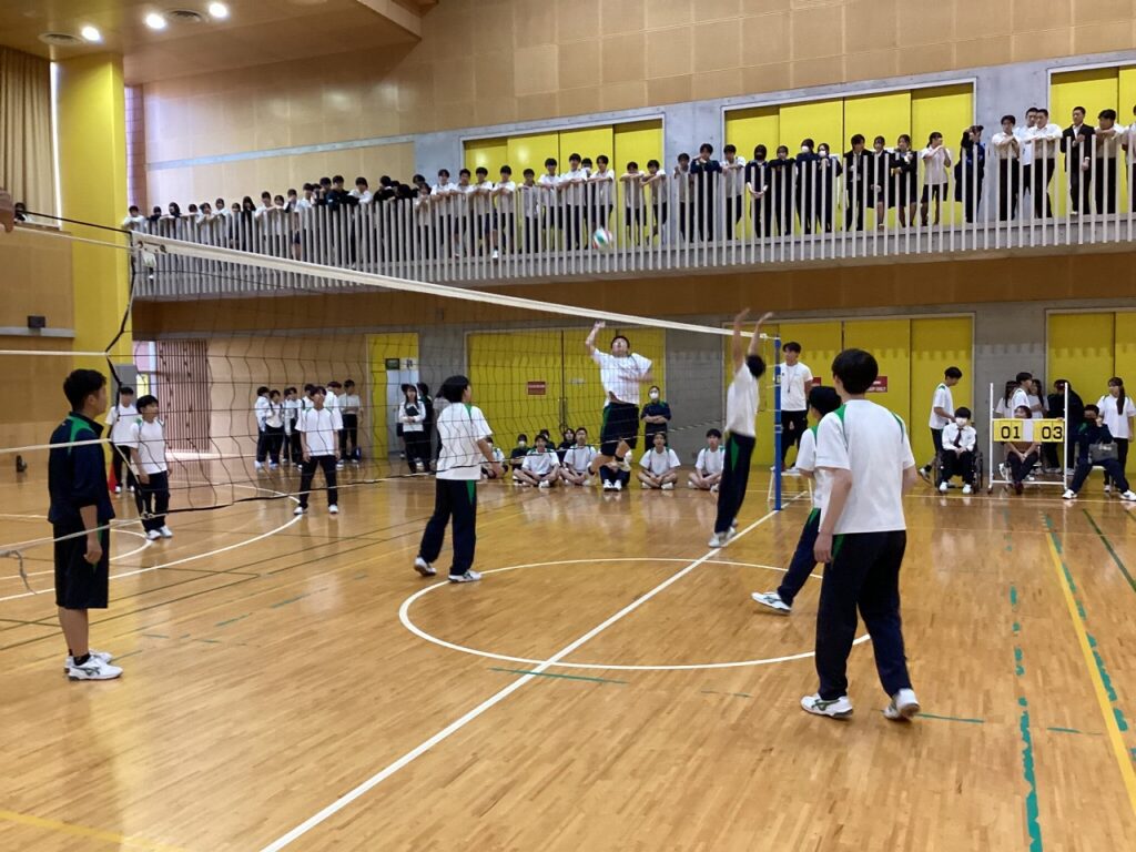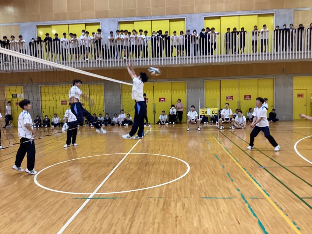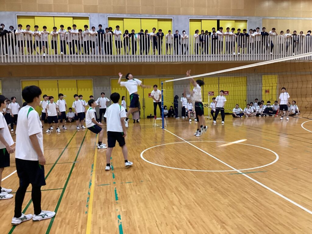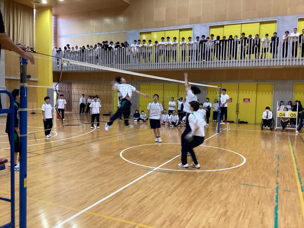 1回戦第6試合、男子1年3組対4組 1年生でもバレーボールの経験者がいるクラスもあり、強烈なアタックを何本も打ち込んでいました。
