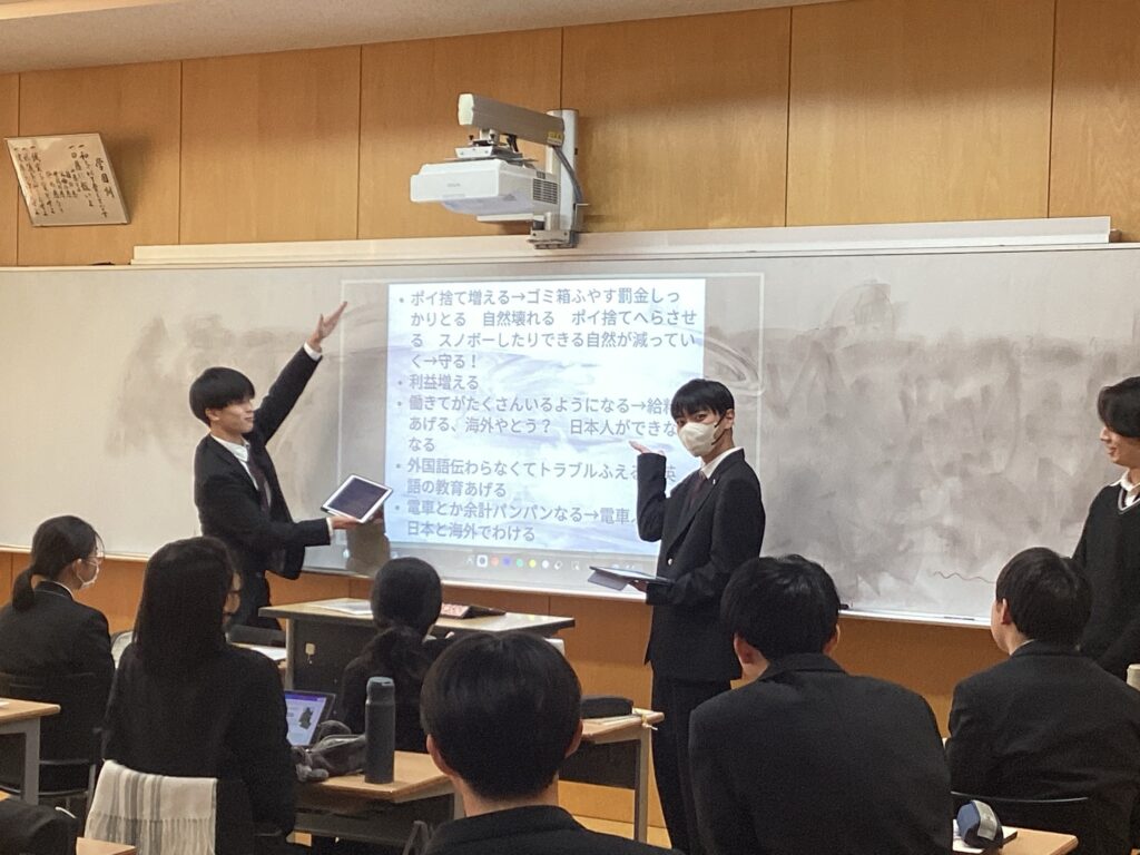 なかなか十分な準備時間をとることができない中、各クラス各グループとも工夫を凝らしたプレゼンテーションを行ってくれました。