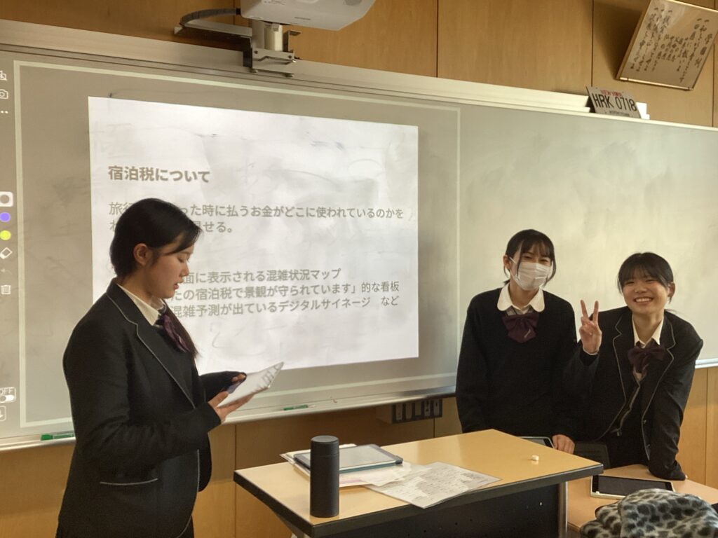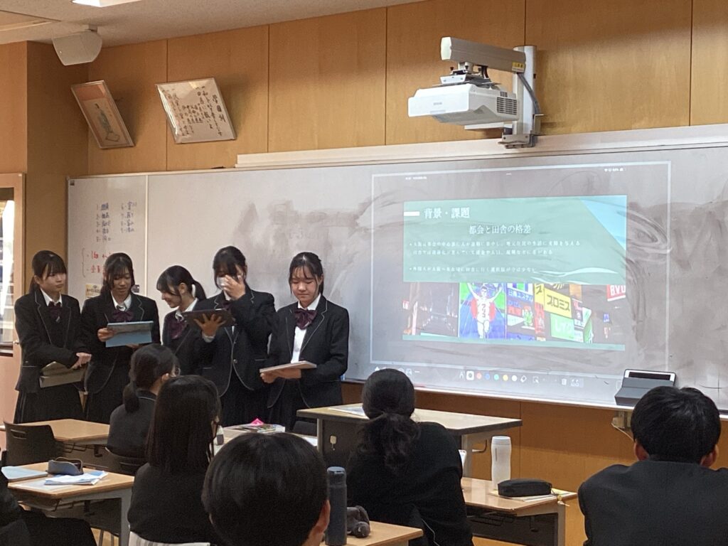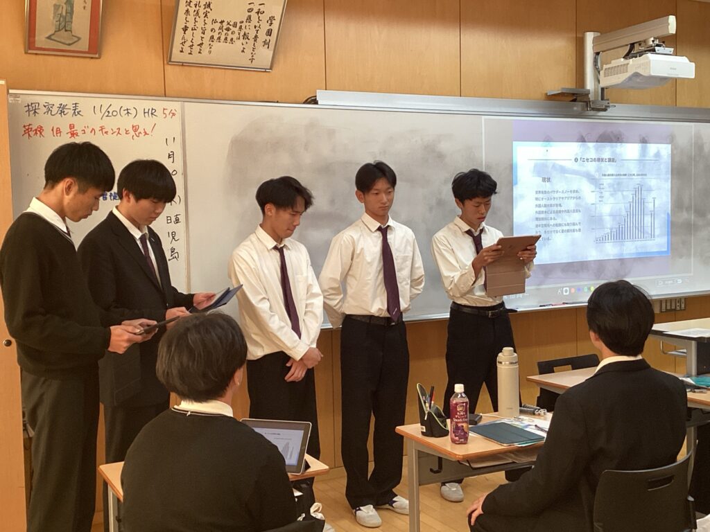 11月20日(木)、ホームルームの時間を利用して、修学旅行における探求学習の発表会が行われました。
