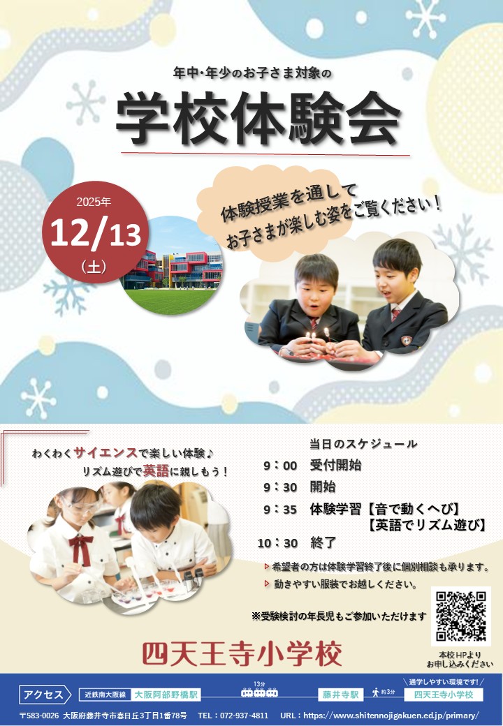 ※なお、当日は「対話型入試」「一般入試」の体験教室をご自由に見学していただけます。