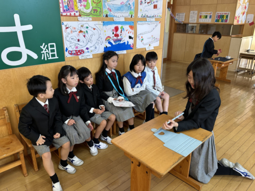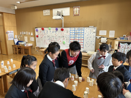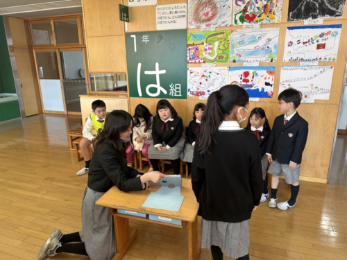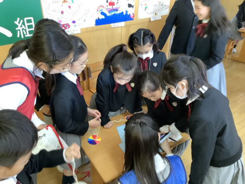 午前の部では、縦割り班でお店番をしたり、お店巡りをしたりしました。
