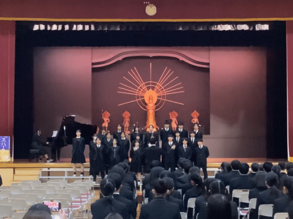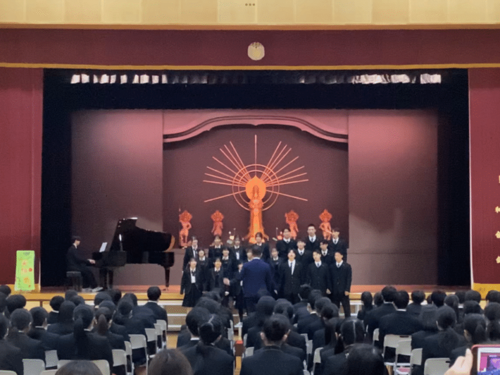 音楽の授業で学習した内容を土台としながら、曲選びや表現の工夫、練習の進め方などをクラスで話し合い、自主的に取り組んできました。中には、授業で扱っていない楽曲に挑戦したクラスもあり、それぞれの個性が光る発表となりました。