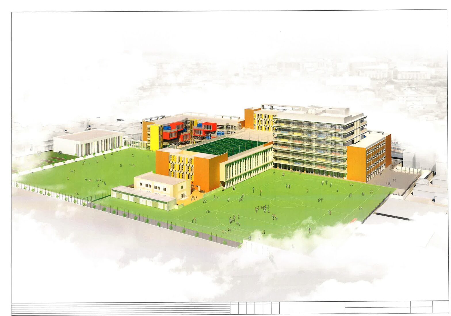 現在、体育館南側に新たにクラブ更衣室の建築を行っています。更衣室23室、会議室1室が入る建物で、その周りには132台分の駐輪場も増設されます。