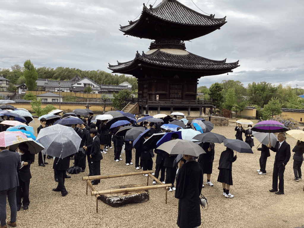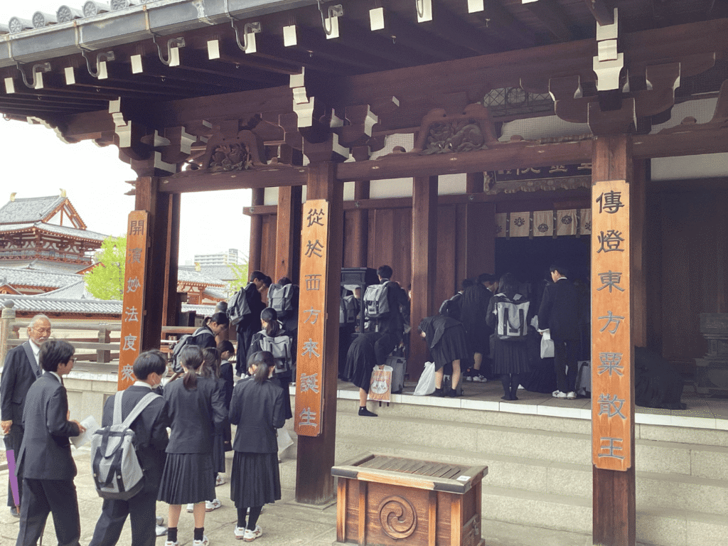 その後、叡福寺へと移動し、参拝ならびに広場にて昼食を摂りました。新入生一同、本校に入学し聖徳太子の和のご精神を礎とし、人格の形成、勉学・クラブ活動に励むことをお誓いしました。