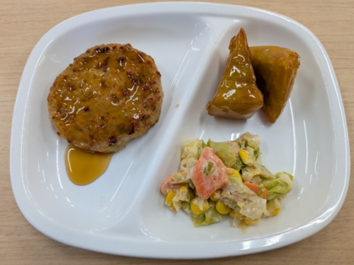 「和風マヨサラダ」は、キャベツ・人参・コーンに糸かつおを加え、ノンエッグマヨネーズで和えています。