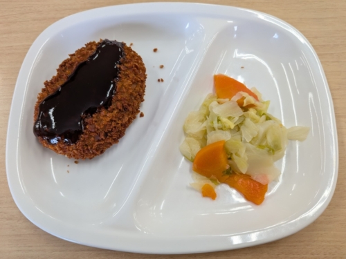 「メンチカツ」は、国産豚肉を使用しています。揚油でカラッと揚げられています。