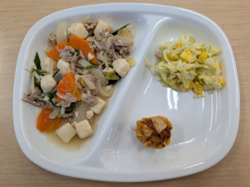 「豆腐チャンプルー」は、具材として「豚こま切れ・豆腐・玉ねぎ・青ネギ・人参」を使用しています。味は、ごはんが進むしっかりとしたものになっています。