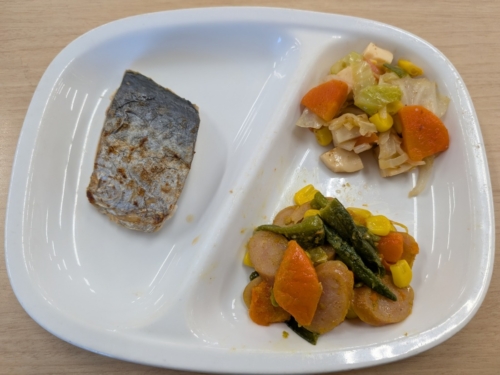 「いんげんのカレー風味炒め」は、塩・コショウとカレー粉を味付けに使っています。スパイスの風味が効いた味に仕上げられています。