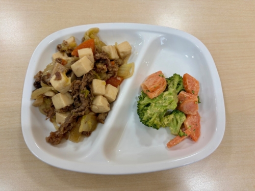 「すき焼き風煮」は、お肉や野菜のうまみが溶け出した甘辛いたれが、ごはんによく合います。