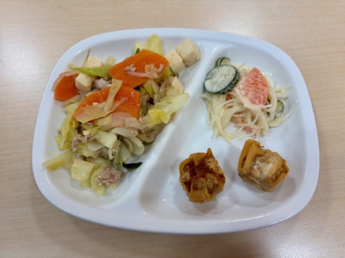 「豆腐チャンプルー」は、豆腐のふわふわ食感と、シャキシャキした野菜の歯ごたえがマッチしていました。