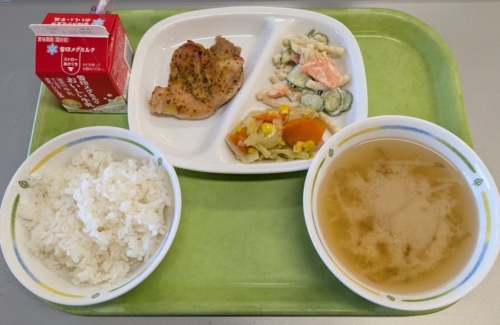 今年度、最初の給食でした。子どもたちは温かい給食をしっかりと食べていました。