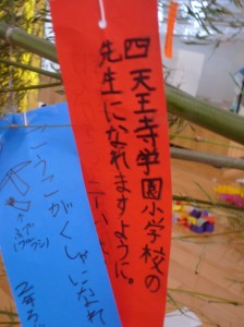 クラスで短冊に願い事を書いて、大きな笹に飾り付けをしました。