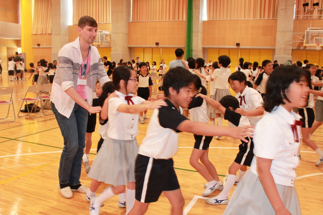 金曜日、毎年恒例のユタ大学学生さんとの交流会(四天王寺大学に留学中)を実施しました。例年は高学年との交流でしたが、今年度は、全校生徒と交流しました。まず、留学生の皆さんの自己紹介の後、子どもたちから個人的な質問や、アメリカ、ユタ州に関する質問を英語で聞いていました。その後、1~4年生は運動会の団体演技発表、5・6年生は聖歌とCountry Roadsの歌のプレゼントをしました。かわいらしいダンスや、気合の入ったソーラン節、心のこもった歌声のプレゼントに、大学生の皆さんにも笑顔があふれていました。最後にみんなでじゃんけん列車や、ハンカチ落としなどをして遊びました。とても楽しい2時間でした。