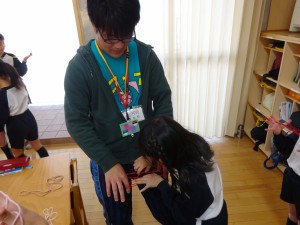 今日は、四天王寺大学のお兄さん、お姉さんが来て昔の遊びを教えてくれました。