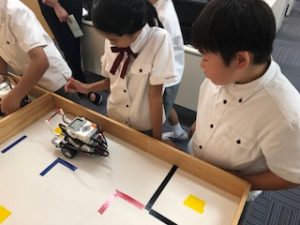 子どもたちは、自分たちのプログラムどおり動くロボットに夢中でした!