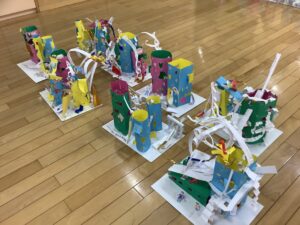 どのグループもいろいろなアイデアを出し合い、素敵な『街』が完成しました。
