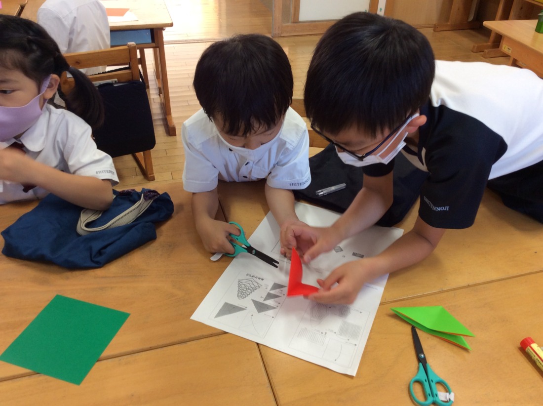 今日の集会では、七夕に向けて縦割り班で七夕飾りをつくりました。高学年は低学年に寄り添い、優しく声をかけながら活動することができました。たくさんの笑顔が見られ、素敵な七夕飾りが完成しました。