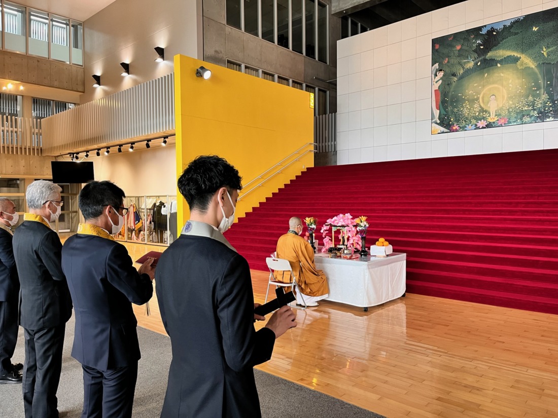 「花まつり(灌仏会、降誕会)」に向けて、花御堂にお釈迦様の来臨を請い願う「勧請」を行いました。