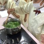 ホーム > 学校ブログ > 学校の様子 > 家庭科「青菜をゆでよう」(5年生)