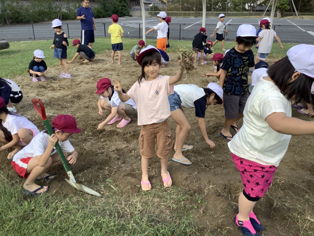 森本先生があらかじめ草を抜いてくださっていたので、残りをみんなで抜いたら、あっという間にきれいな砂場となりました。