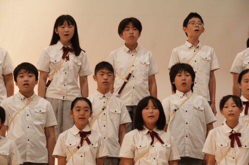 たいし合唱団は、今年度のNHKコンクールやMBSコンクールで演奏し、賞をいただいた「争い」を発表しました。