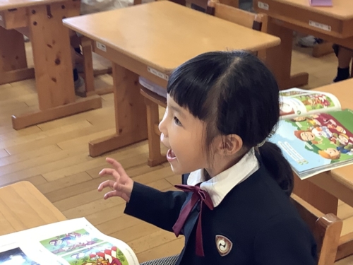 1年生は、chantを通して可算名詞、不可算名詞に触れています。もちろんこどもたちはそんなことばは知りませんが、breadやmilkには何にもつかないけれど、eggやappleは2 eggsになったり、an appleになったりするんだあと気づきました。