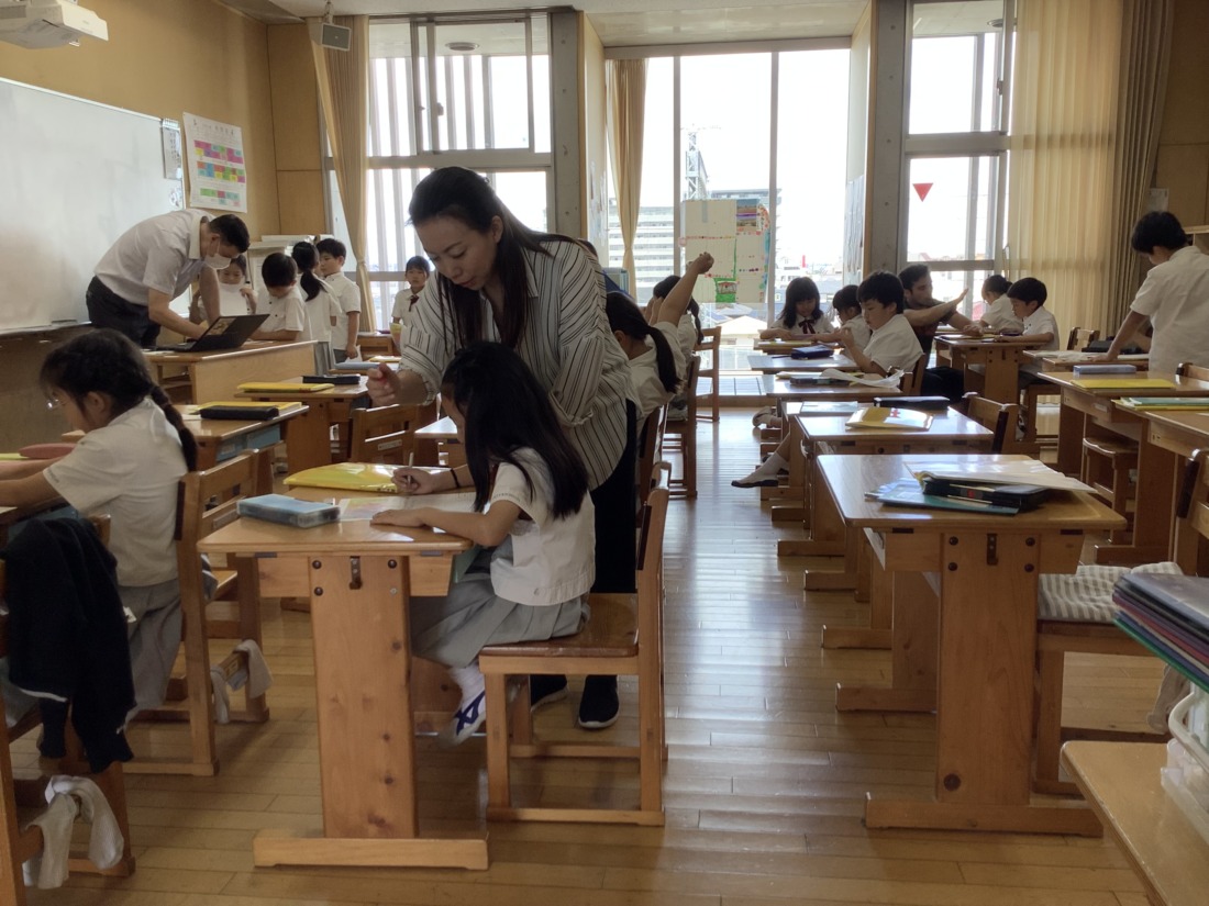 ワークシートに英文を書く学習では、ミニ先生が沢山登場しました。