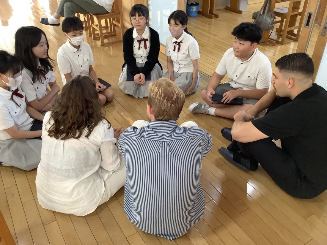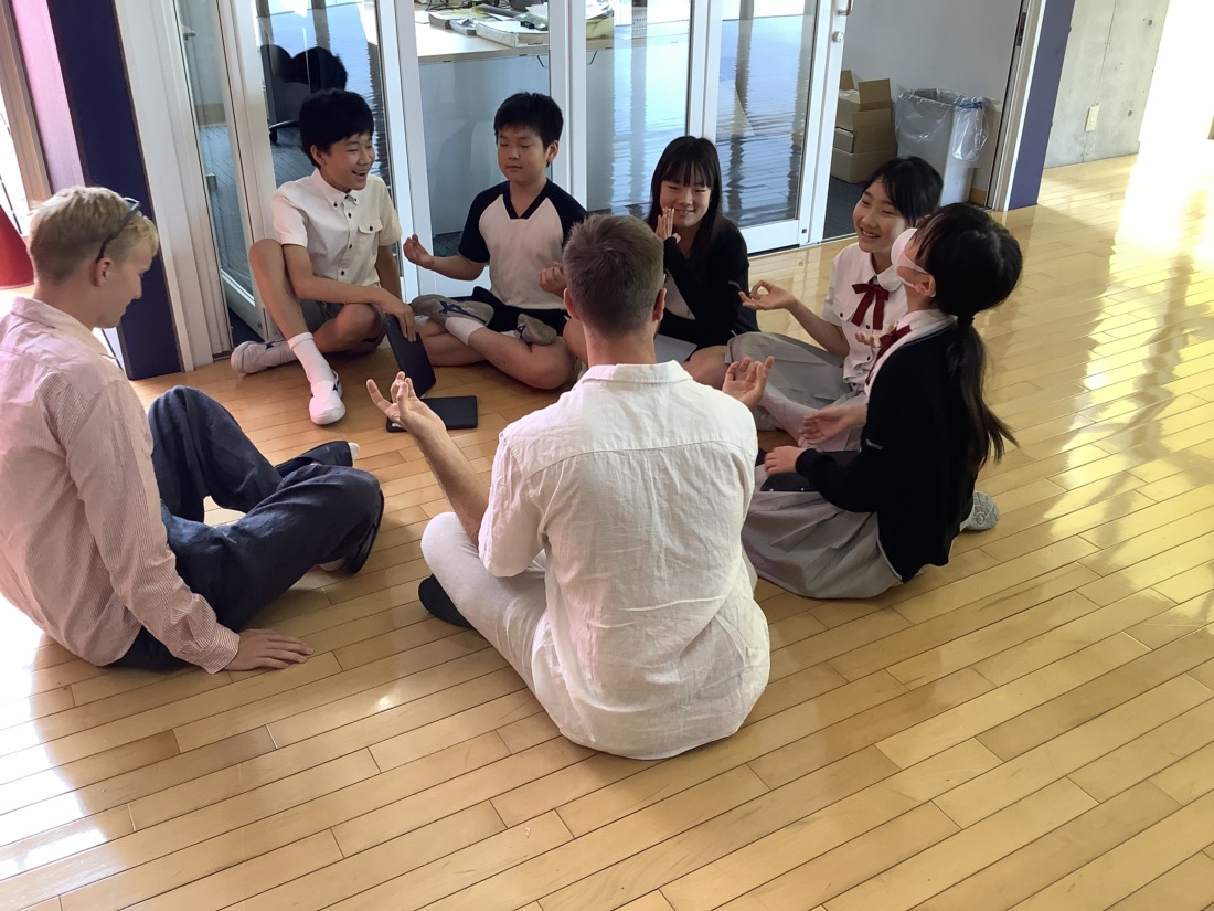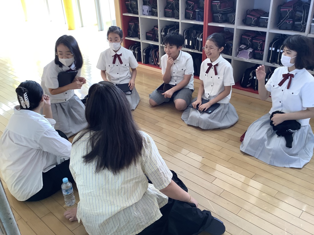 始めは全員で質問をし合います。「好きなアニメは?」「学校の中で好きな場所は?」と、返ってきた答えに大盛り上がり。