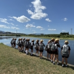 大和川河川敷、柏原市役所、山国ぶどう園へ社会科見学に行きました。大和川河川敷と柏原市役所では、大和川のつけかえ場所を見て、地域の発展に尽くした中甚兵衛の思いや願いはどんなことだったのかについて考えました。ぶどう園では、なぜ柏原でぶどう作りが盛んなのか、また、生産者さんの工夫や努力を直接聞くことができました。疑問に思ったことを積極的に質問することができました。ぶどうを買う時に美味しいぶどうを選ぶコツも教えていただきました。
