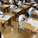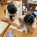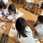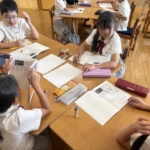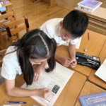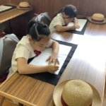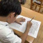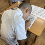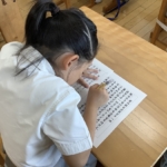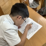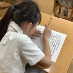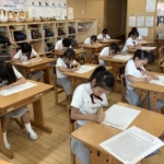 宗教の時間に心を落ち着かせ、願いを込めて写経をしました。みんな真剣に取り組む姿が素晴らしかったです。
