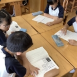 国語科では、「新聞記事を読もう」という学習をしています。まずは記事の見出しを見て、大まかな内容をつかみました。見出しは、記事の一番伝えたいことが短い言葉で表されていることを学びました。その後、グループで相談しながら120字程度で要約文を書いてみました。キーとなる言葉や文章はどこなのかをみんなで相談しながらしっかり考えることができました。初めての学習でしたが、どのグループも大事な点を捉えてまとめることができました。学習のまとめとして、その記事を読んだ自分の考えも書きました。