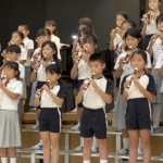 4年生は、リコーダー「カントリーロード」を演奏し、二部合唱「瑠璃色の地球」を歌います。音楽の授業だけでなく休み時間にもリコーダーの練習をする姿が見られました。二部合唱では、アルトとソプラノがそれぞれの歌声を聴き、互いの歌声を綺麗に響きわたせようとみんなで心を一つにしようと練習に励みました。