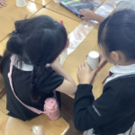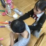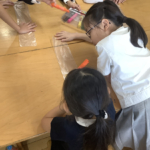 見学中、参加されたお子さんたちは4年生と一緒に工作を楽しみました。