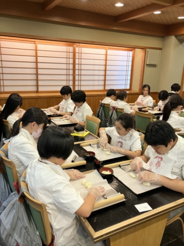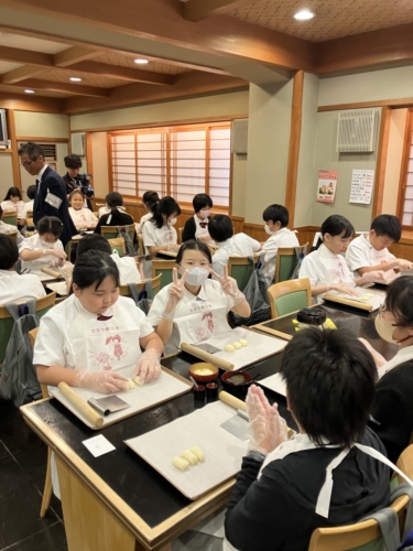 ②八つ橋庵ししゅうやかたでは、生八つ橋づくり体験をしました。