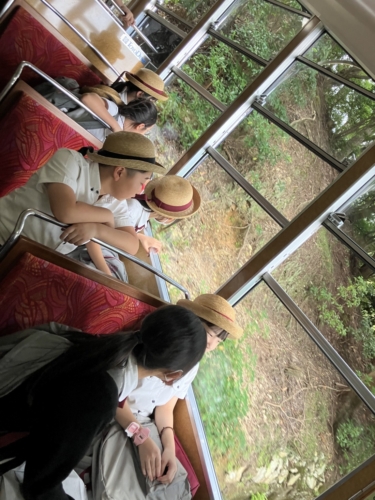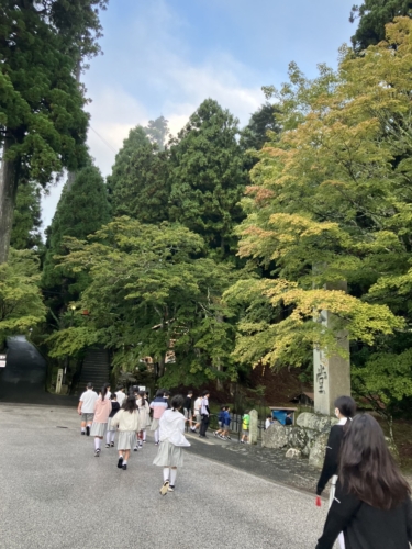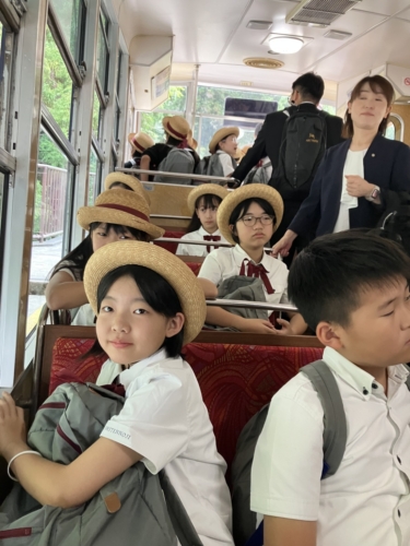 ③ケーブルカーに乗り、比叡山延暦寺へ行きました。ここでは、恒例の修行体験をしました。