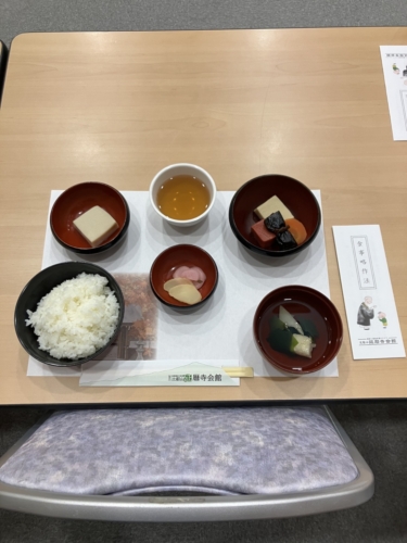 ④精進料理もいただきました。食への感謝、作っていただいたことに感謝の気持ちをもち、作法を守りながら静かに頂きました。