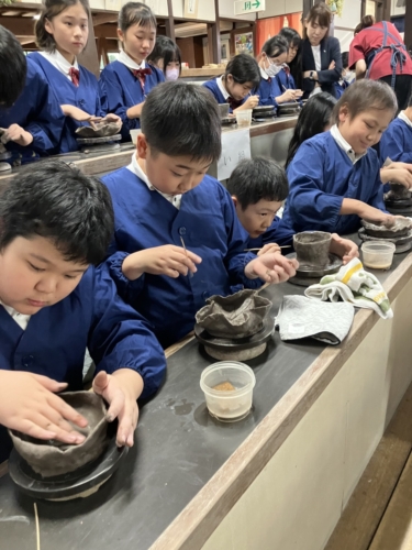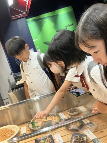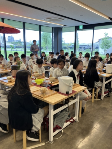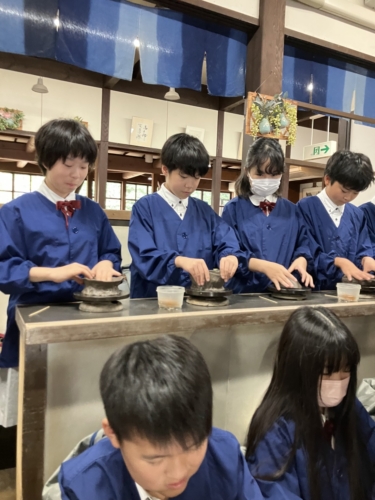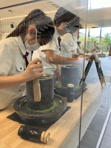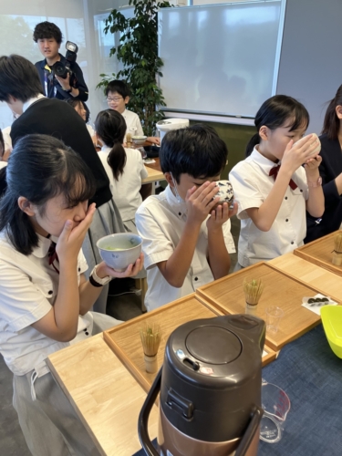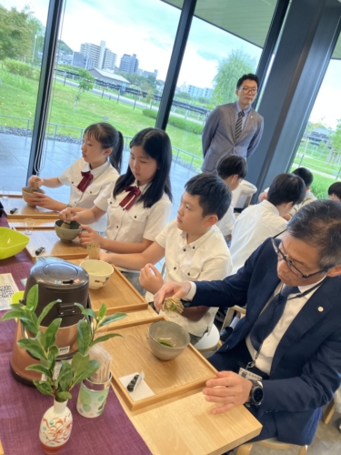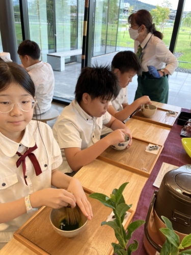 ①茶づなでお抹茶をいただきました。葉から粉にする作業も楽しかったことでしょう。お茶をたてるのはお手の物ですね。