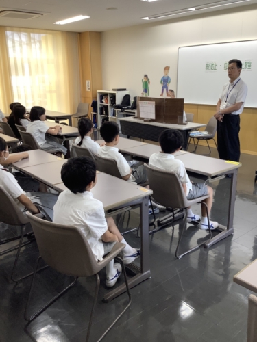 ペープサートの劇では、万引きをしたらどうなるのか、なぜだめなのかを分かりやすい言葉で伝えていただきました。