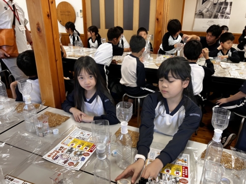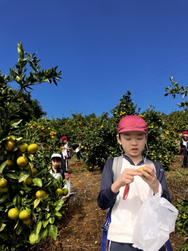 2日目からは天候に恵まれ、和歌山の自然に触れる体験を満喫しました。みかん狩りでは、農家の方のお話を聞き、実際にみかんを摘み取ることで、社会科の学習に結び付けることができました。湯浅醤油では、大豆と酵母菌からお醤油をつくる体験を通して、大豆の変身を実感しました。