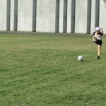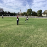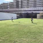 体育CLILでサッカーです。パスも上手になってます。友だちが取りやすいところへボールをよく見て、「えいっ!」