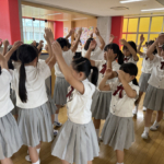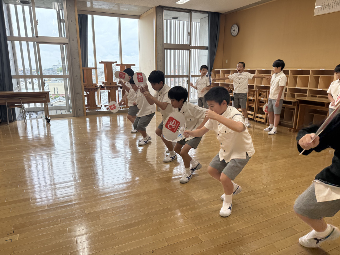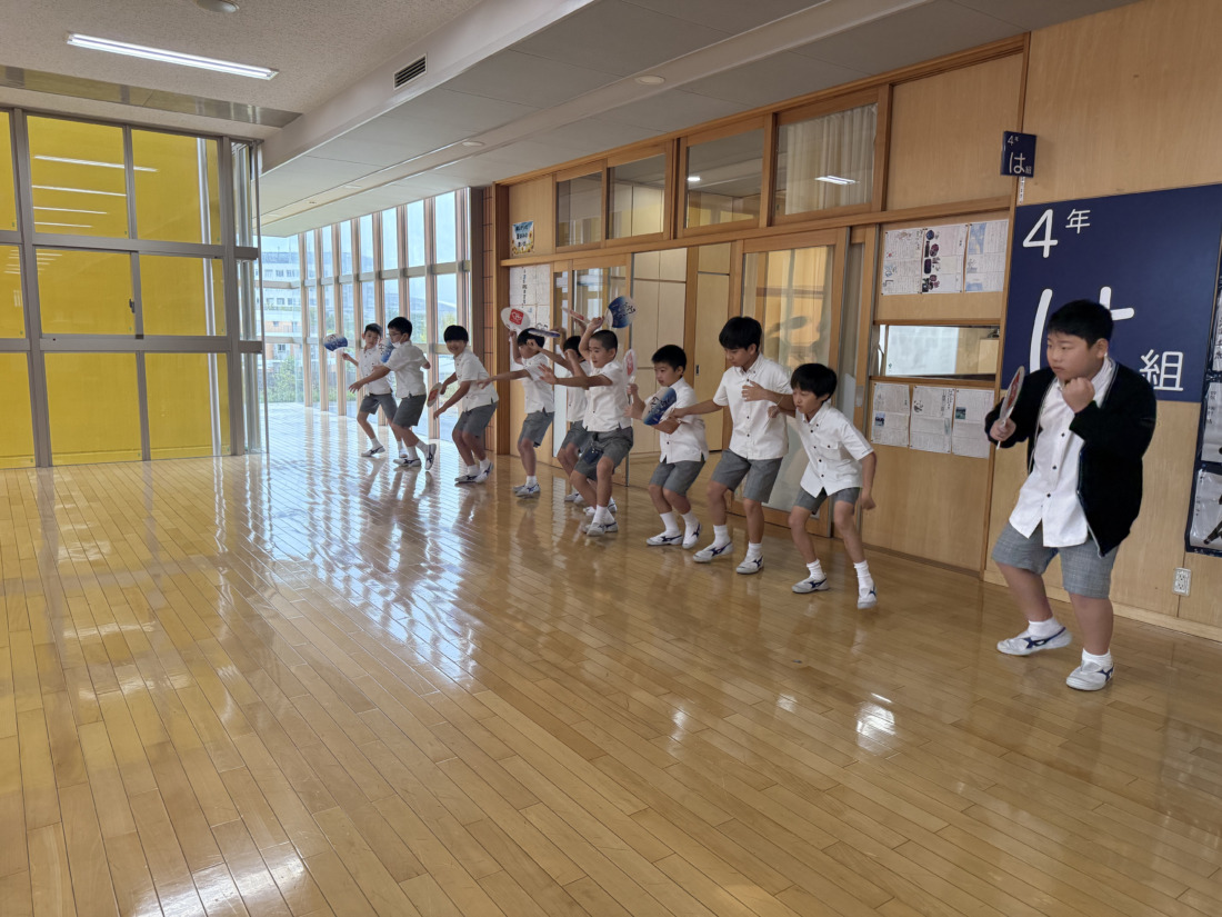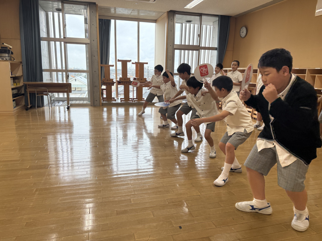 海外研修に向けて、子どもたちは徳島県の伝統芸能「阿波踊り」に取り組みました。優雅でしなやかな「女踊り」と、ダイナミックで豪快な「男踊り」に分かれて練習に励みました。最初は、踊りに苦戦している子どももいましたが練習を重ねるごとに上手になっています。当日は、心を一つにして海外研修の交流で披露しました。