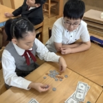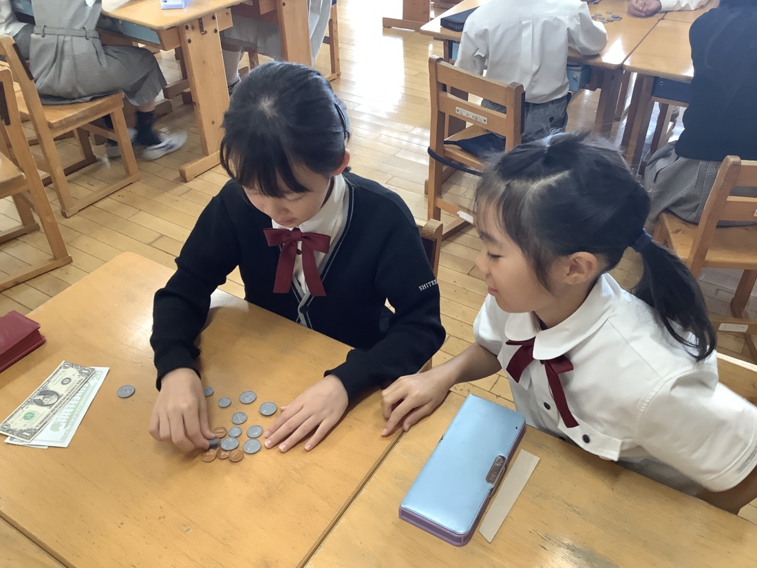 海外研修では、朝ごはんやお土産を買います。お買い物も楽しみの一つです。そのためにアメリカドルについての学習をしています。練習を重ねることで言われたお金を聞き取り、おつりがないように出すことが出来るようになっています。