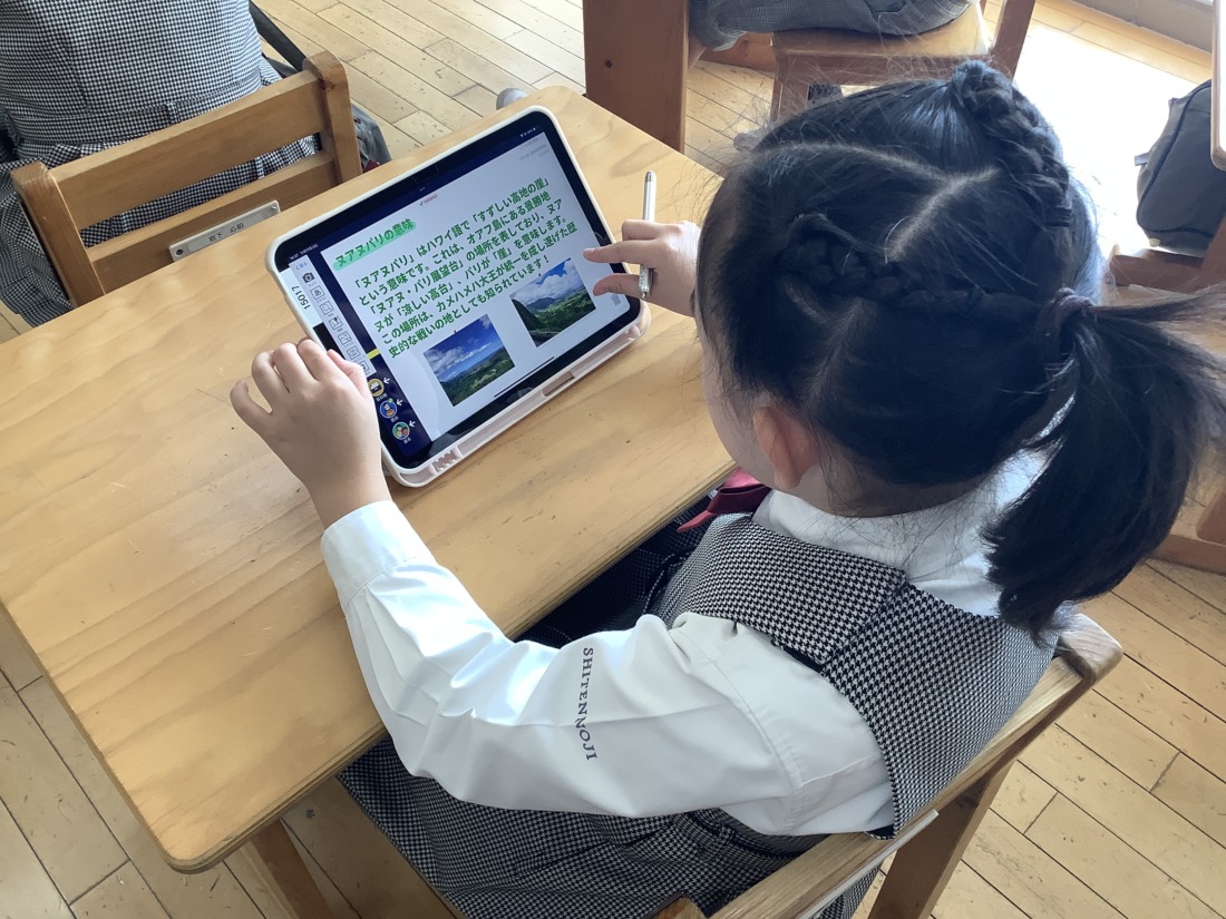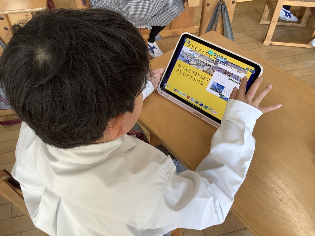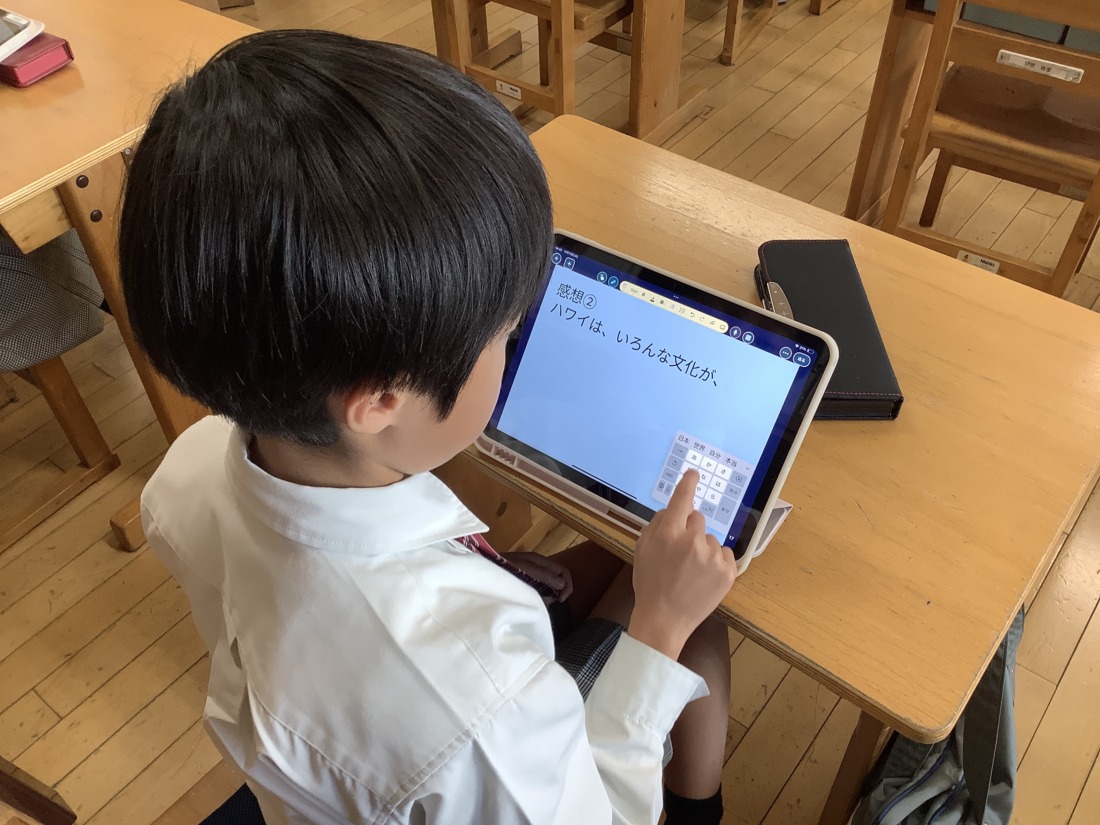 「総合的な学習の時間」にハワイについての調べ学習をしました。ハワイの歴史や文化、観光地やお土産についても調べました。来週からの海外研修では、調べたことを実際に見たり体験したりすることをとても楽しみにしています。たくさんのことを学んできてほしいと思います。
