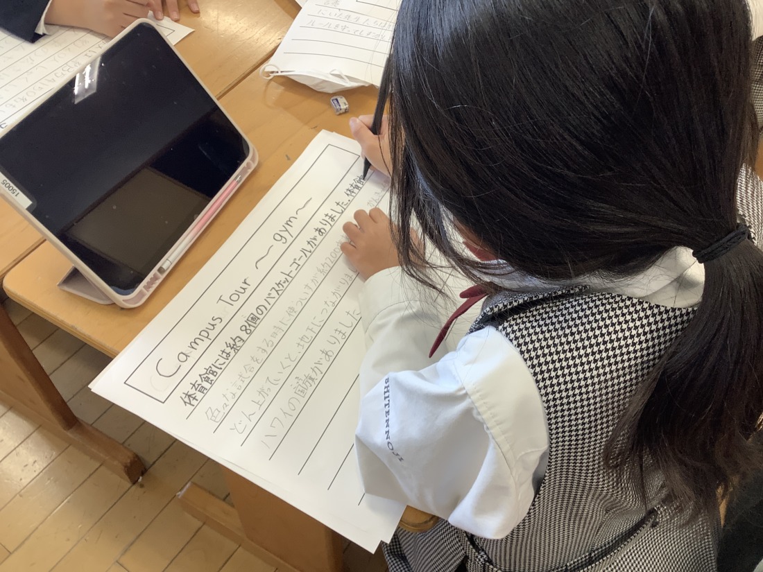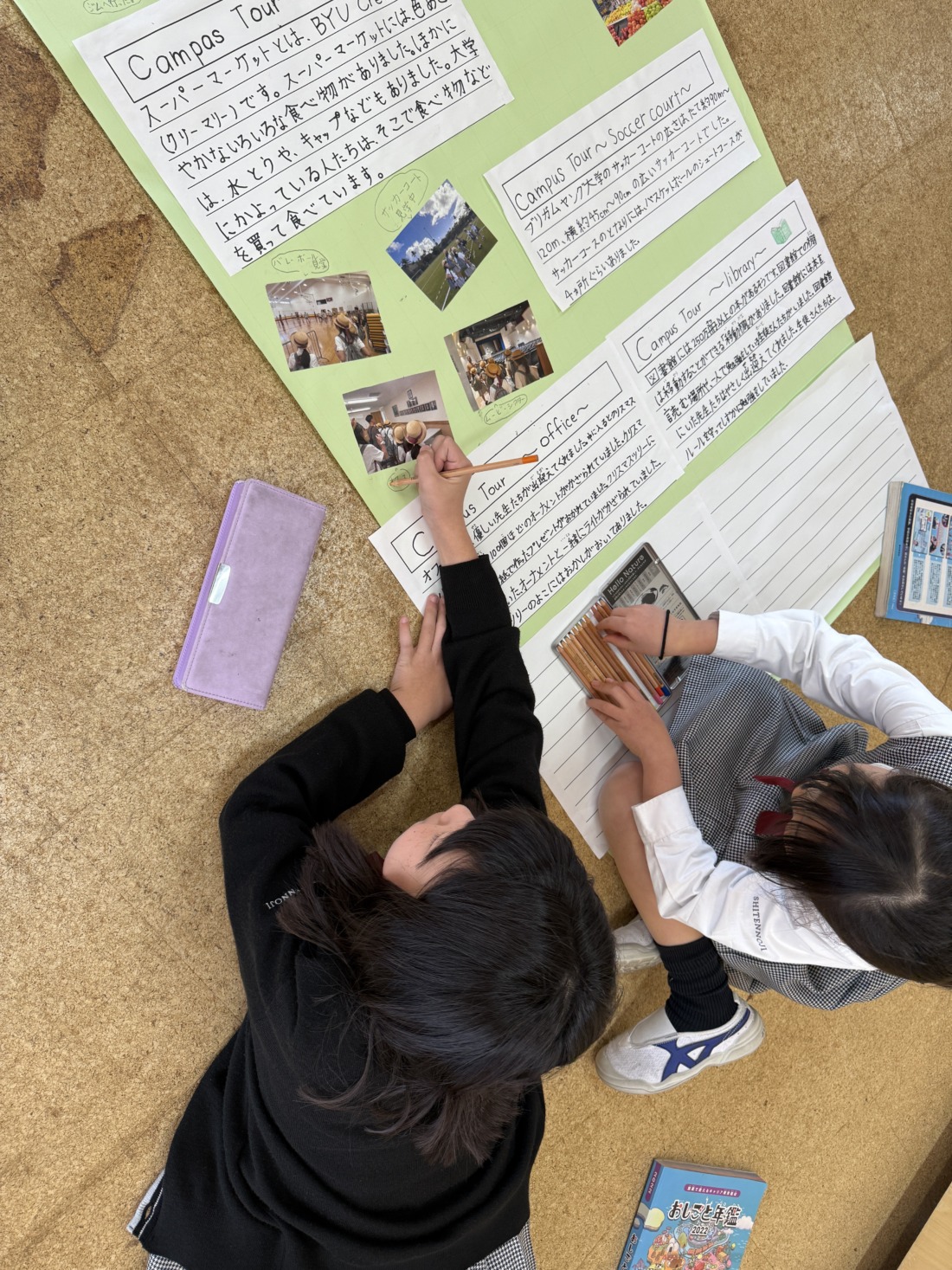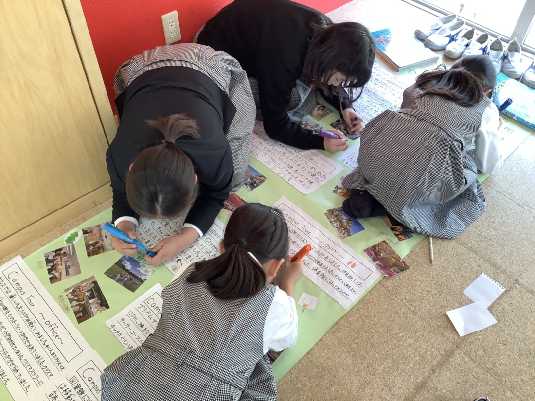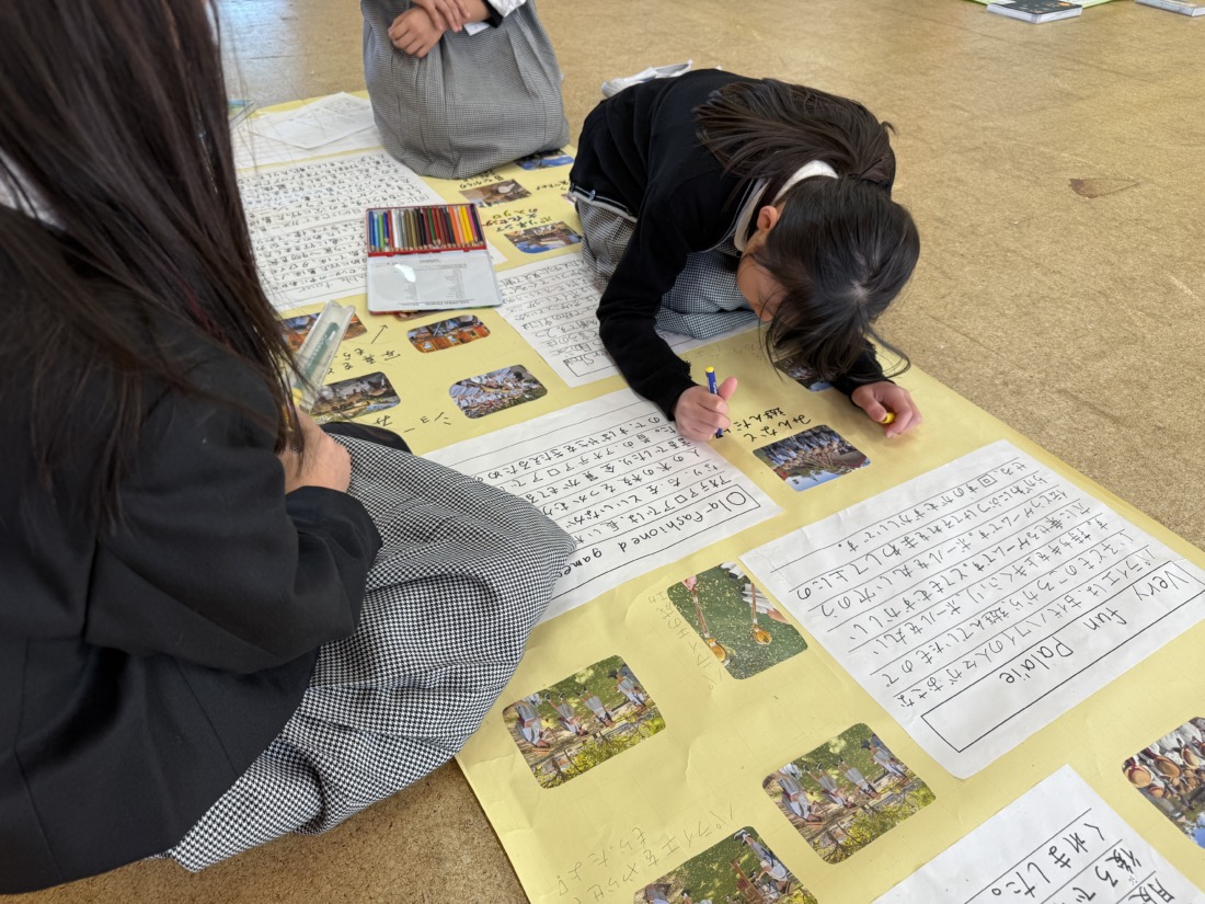 海外研修に行って学んできたことをまとめる学習をしています。来年度、海外研修に行く3年生にハワイのことを教えてあげたい!という声が挙がりました。ハワイの基本的な知識や実際に研修でどんな活動をしてきたのか、伝えたいことはたくさんあるようです。3年生が来年の海外研修を楽しみ!と思えるよう、グループで協力して工夫してまとめています。どんな発表になるのか、とても楽しみです。