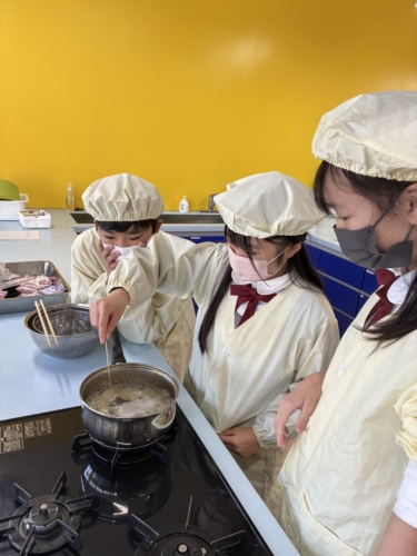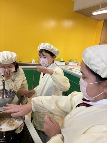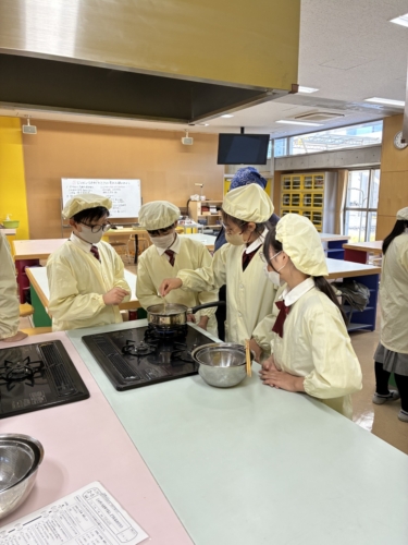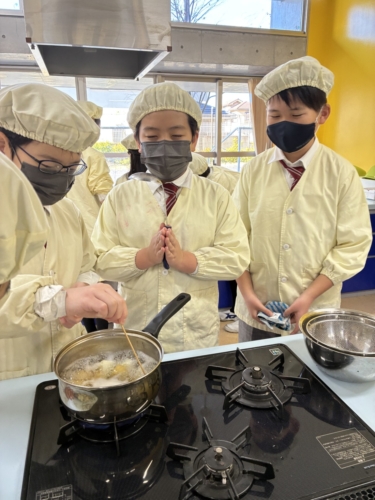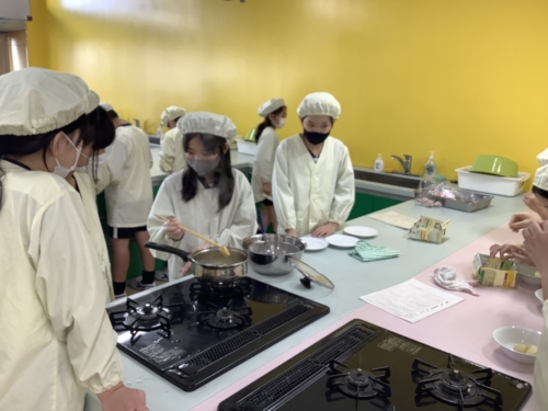 家庭科では、ジャガイモをゆでました。
