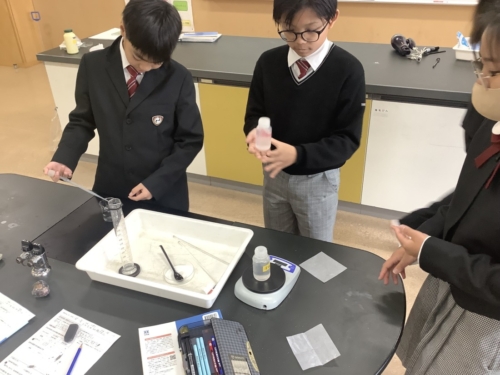 理科では、「ものの溶け方」について実験をしました。