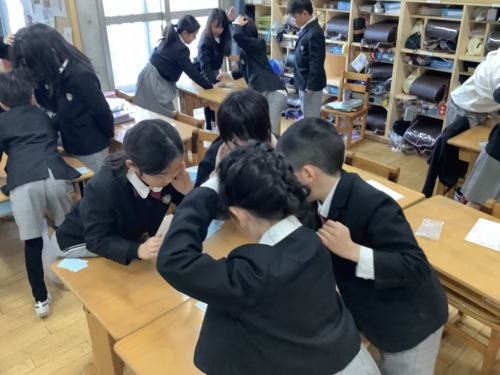 棒や粘土を使って箱の形を実際に作り、その箱を用いて頂点や辺の数を確かめました。知識として学ぶだけでなく、手を動かして制作することで、箱の性質についての理解をより一層深めることができました。
