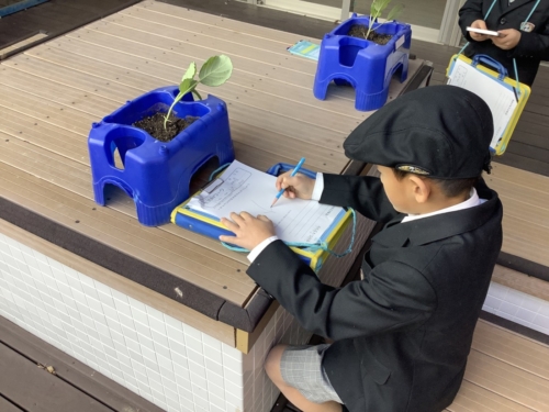 春にモンシロチョウの卵を観察するために、キャベツの苗を植えました。