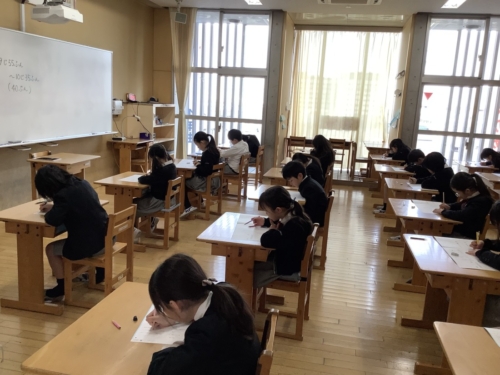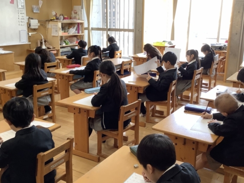 日頃の漢字学習の成果を発揮すべく、どの子も真剣に受検していました。