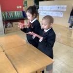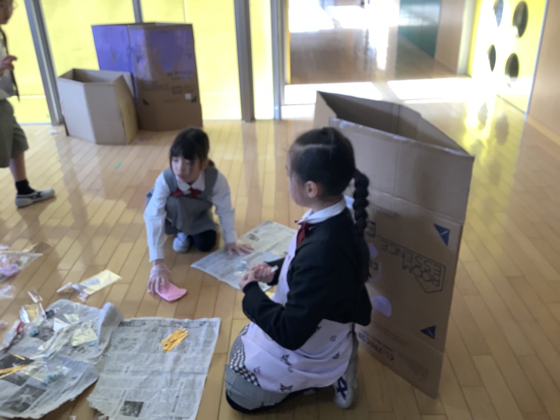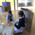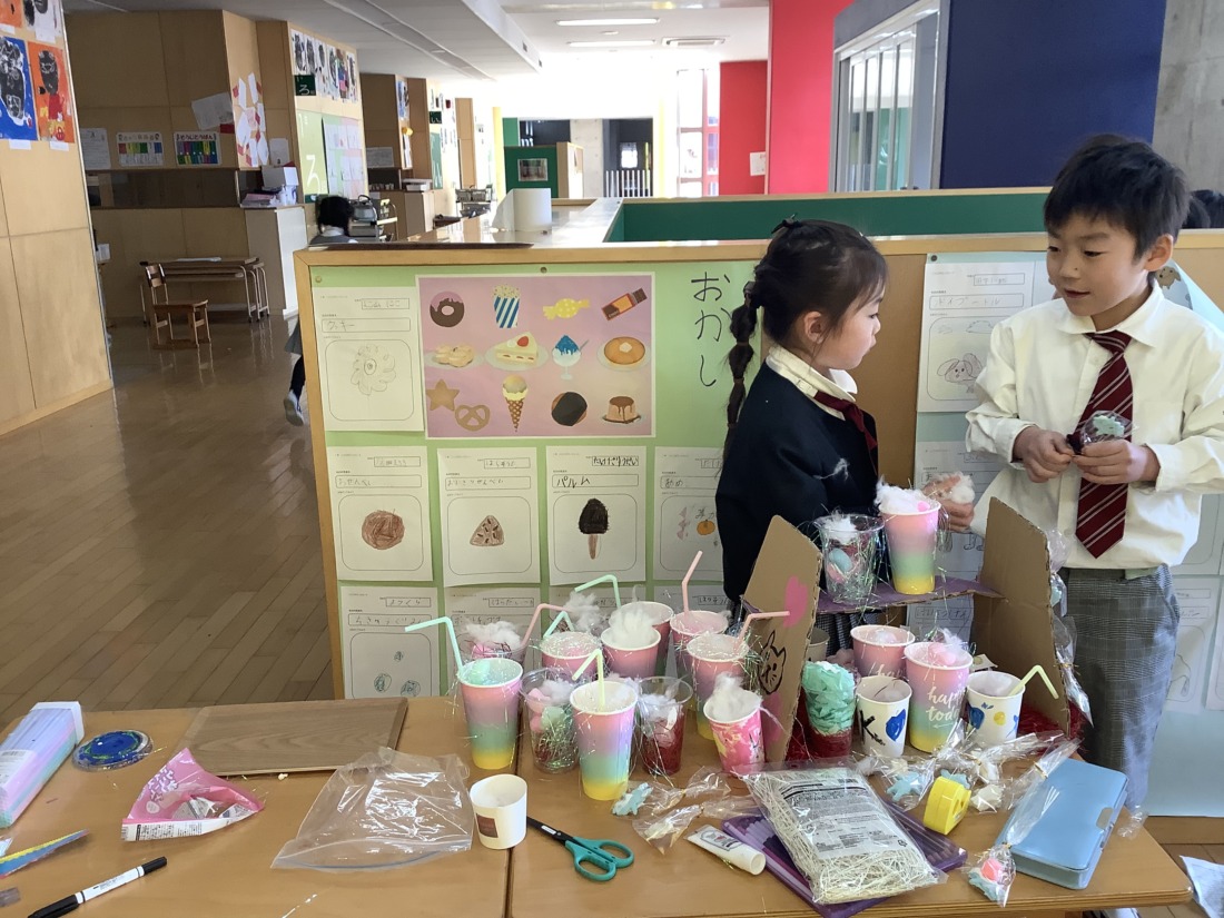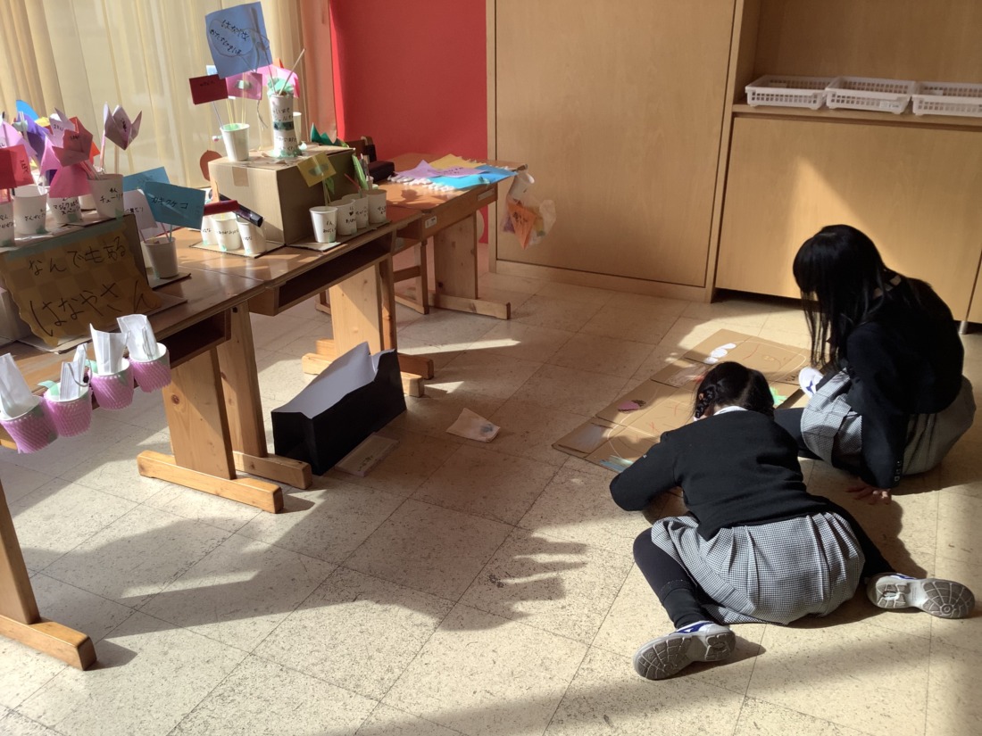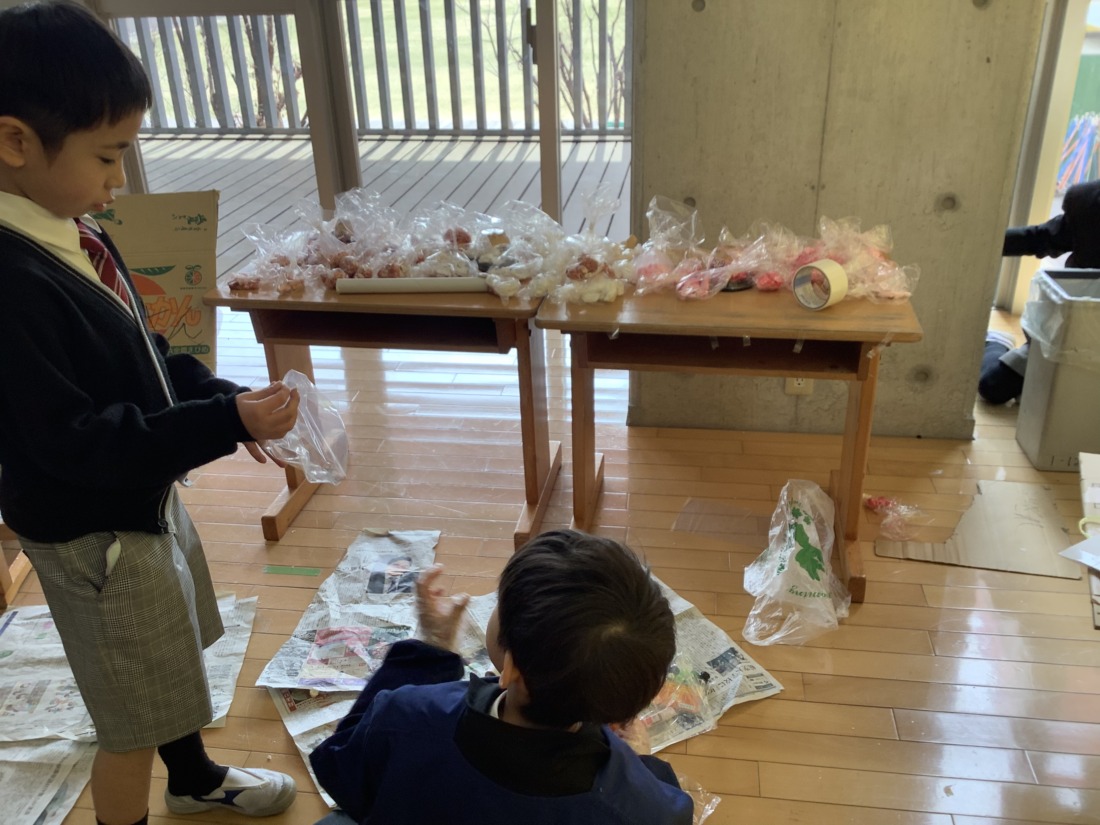 いよいよ明日、お店やさんごっこです。着々と準備を進めています。みんな、明日が待ちどうしくてなりません。